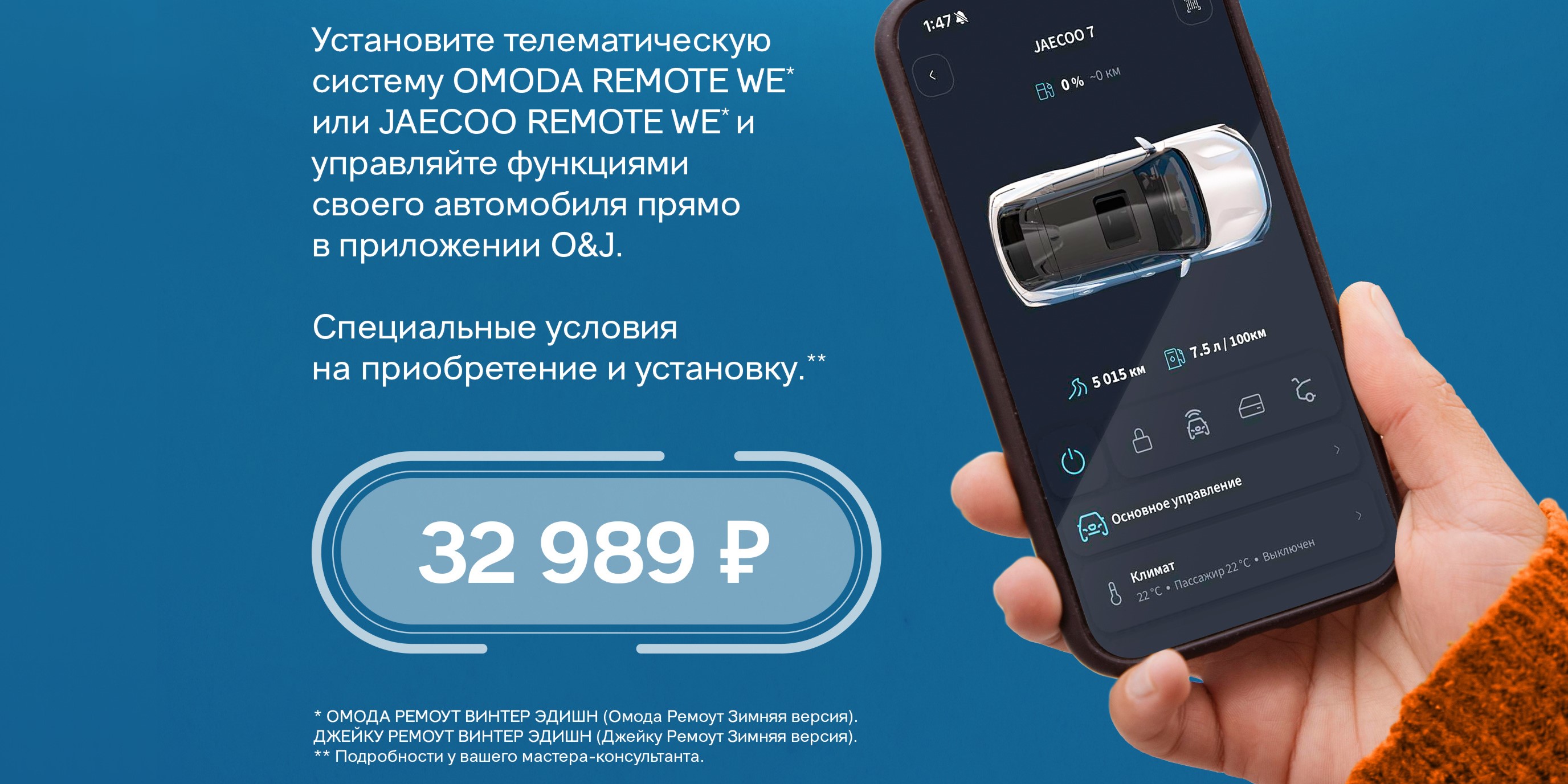 Холодно за окном? Не проблема! Установите телематическую систему OMODA REMOTE WE или JAECOO REMOTE WE и управляйте всеми функциями своего авто прямо из приложения O&J.